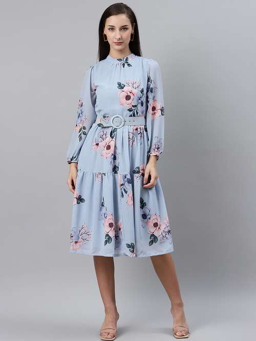 - » mock neck floral belted dress