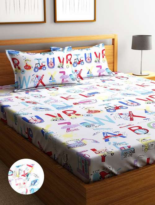 - » printed elastic fitted king size double bedsheet with pillow cover