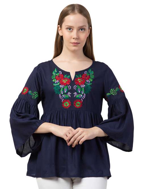 notch neck floral enbroidered top - 16740760 - Very Small Image - 1