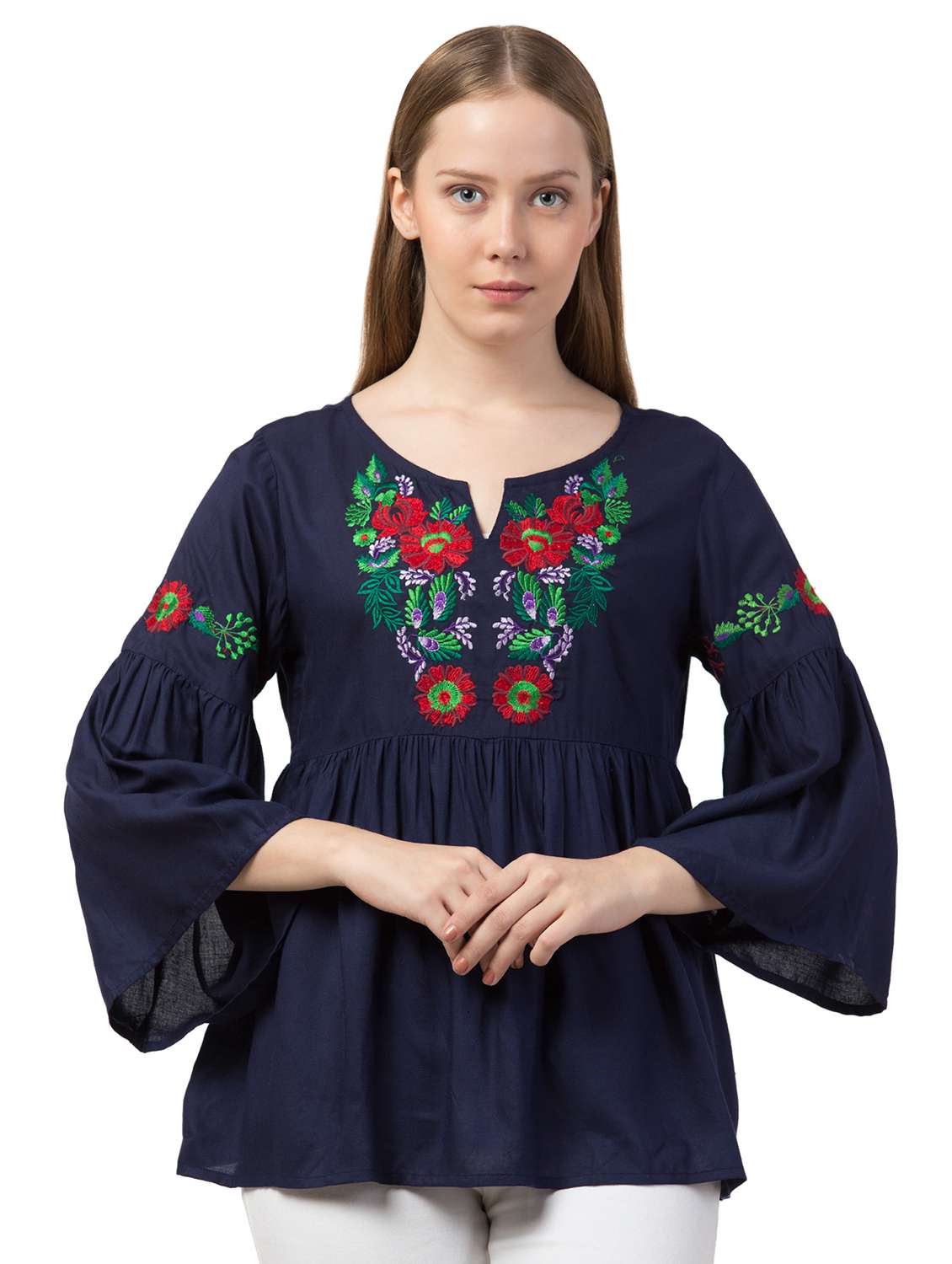 notch neck floral enbroidered top