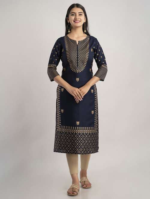 • Grab this beautiful kurta made up of rayon fabric featuring notch neck designs.