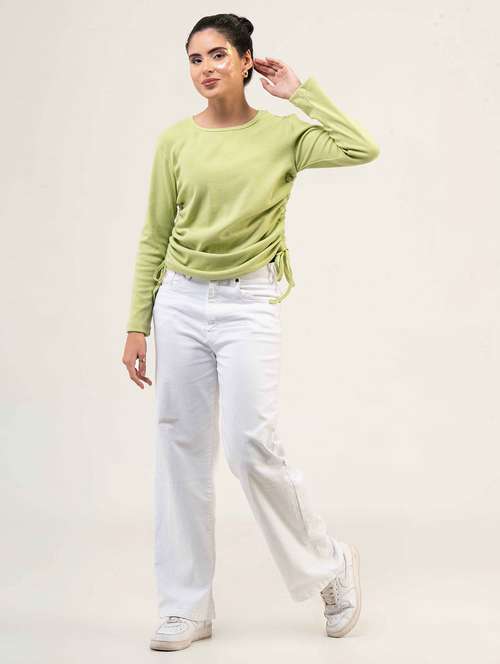 - Opt for this top made up of rib knit material and get it in a varied neck design.