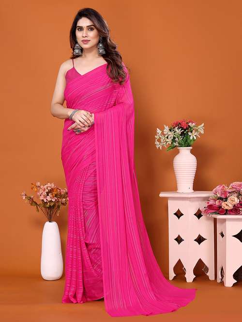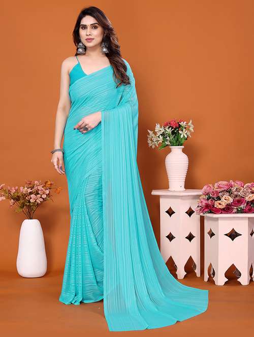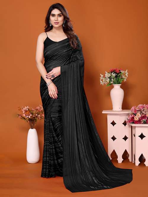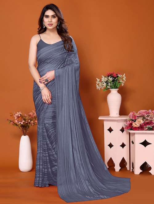 Intricate borders complement the stripes, adding a touch of sophistication. The saree comes with a matching blouse piece, allowing for customization to suit your style. Whether paired with traditional jewelry or modern accessories, this saree is sure to make a statement and highlight your elegance.