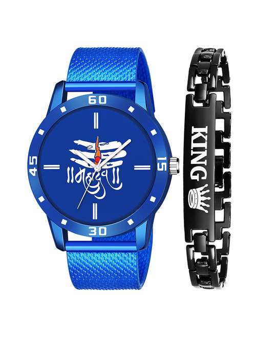 - » kajaru new fancy stylish - blue pu strap & black king bracelet combo watch