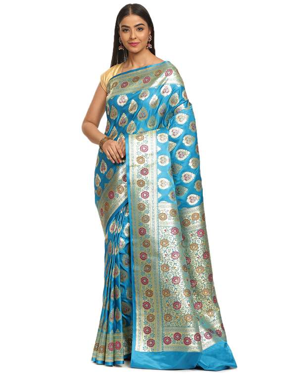 zari work banarasi saree with blouse - 17748452 - Very Small Image - 1