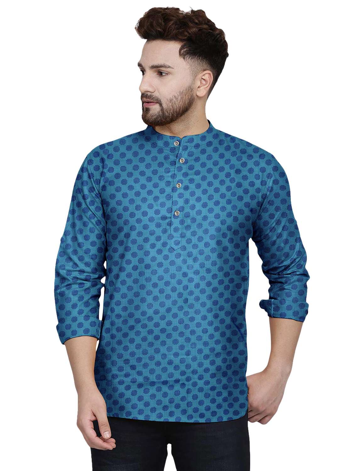 - » navy-blue printed short kurta