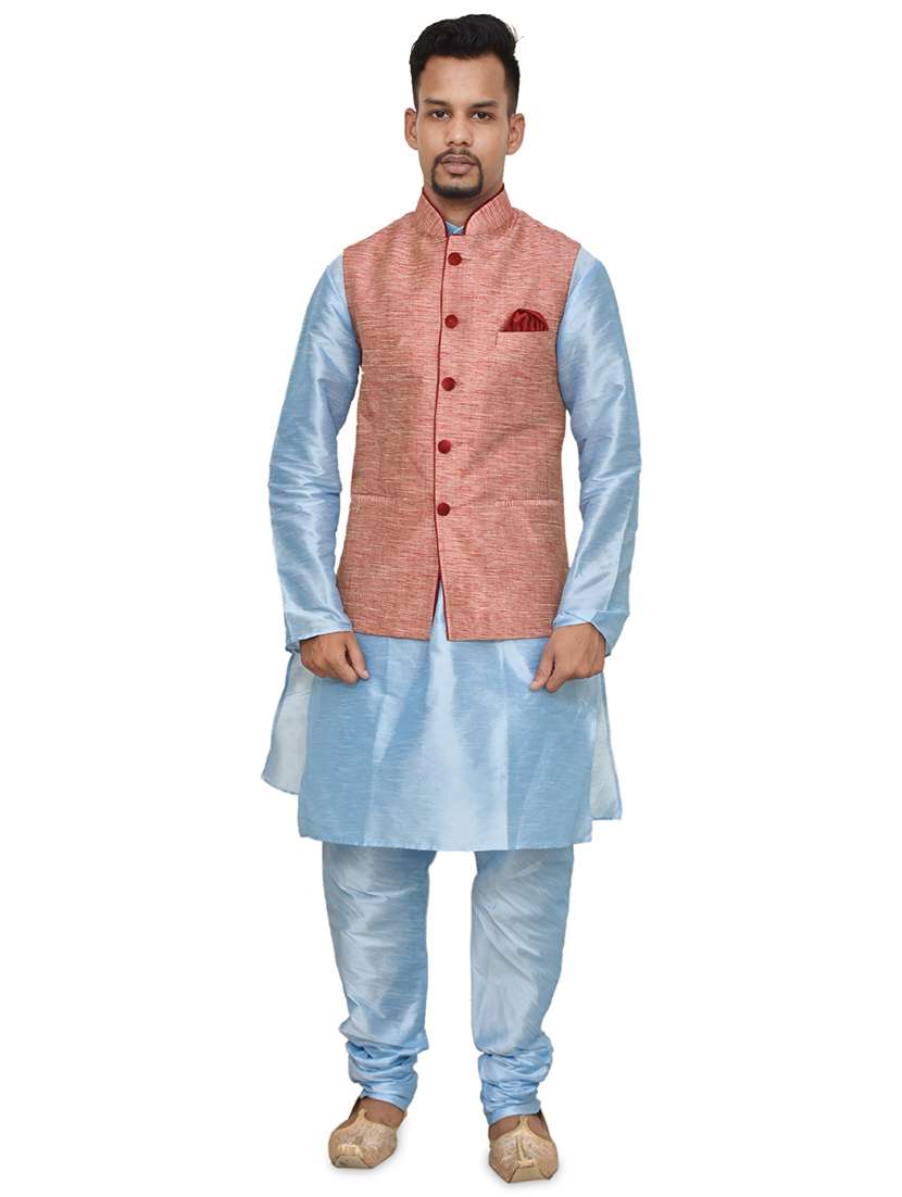 blue silk blend kurta pyjama with jacket ethnic wear set - 19187909 -  Standard Image - 1 blue silk blend kurta pyjama with jacket ethnic wear set - 19187909 -  Zoom Image - 1