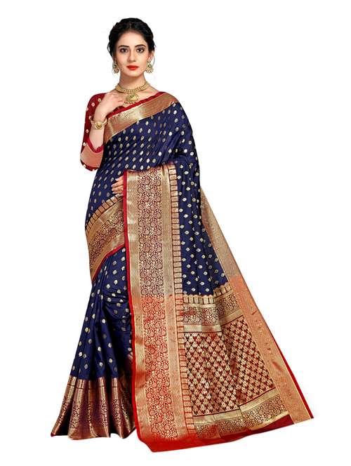 zari work woven saree with blouse - 18119564 - Very Small Image - 1