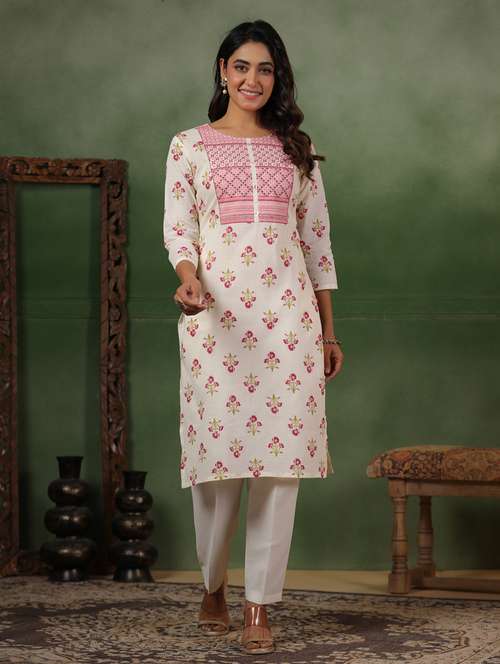 - Grab this beautiful kurta made up of silk fabric featuring round neck designs.