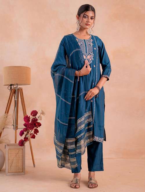 - Find gorgeous sets of ethnic wears in trending designs in blue colors suitable for festive wear of occasions.