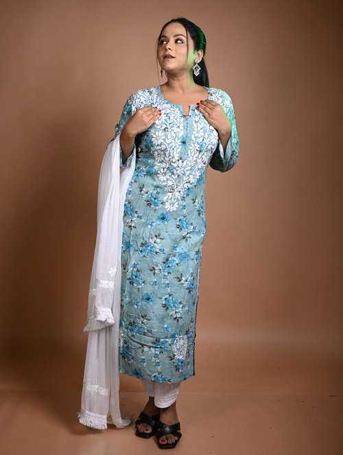 - Browse through the latest range of ethnic sets for women with tailored sleeve designs with chikankari works.