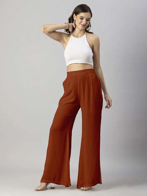 *Includes: This Clothing Consists Of 1 Pair Of Pants (Any Accessories Worn By The Model Are Not For Sale)*Material: Crinkle Rayon*Pants Length: 44 Inches (Approx.)*Model Stats: The Model In The Image Is 178 Cm Tall, And Bust 33\" Inches Is Wearing Size - (S) Small*Features: Wide Leg Fit, Concealed Zipper, High Waist, Ankle Length, Lightweight And Solid Pattern*Care: Medium Machine Wash, Warm Iron, Iron While Damp. (After Washing Do Not Dry The Fabric On High Heat And Do Not Dry Fully. Medium Heat Is Best And Removes Just Prior To Being Completely Dry*Size Information: Please Refer To Our Size Chart Before Making The Purchase. If Your Size Is In Between Two Sizes, We Recommend That You Choose A Larger Size.*Tags: Solid Pants For Women, Palazzo Pants For Women, Long Length Pants For Women, Wide Leg Pants For Women, Trousers For Women, Lower For Women, Resort Pants, Summer Pants, Wide Leg Palazzos