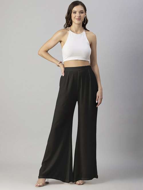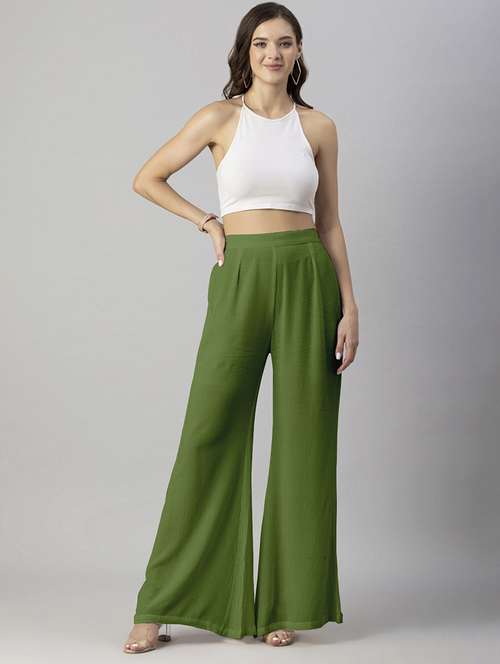 - » women solid green wide leg trouser
