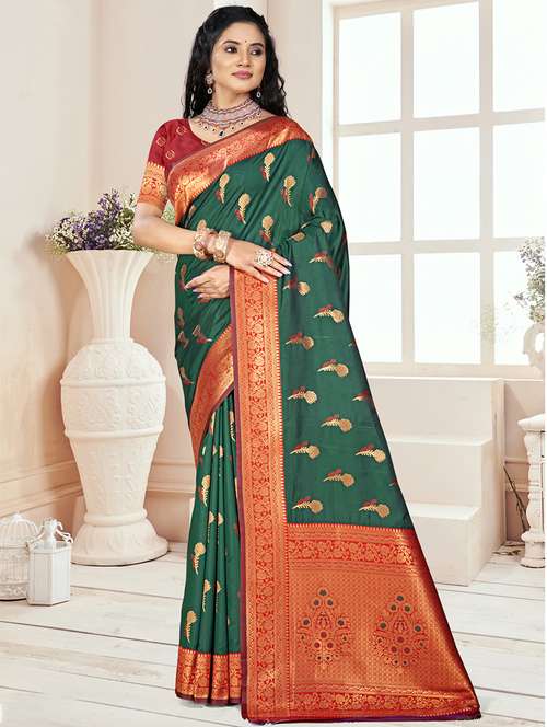 Sangam Prints Bottle Green SILK Woven Work Traditional Saree