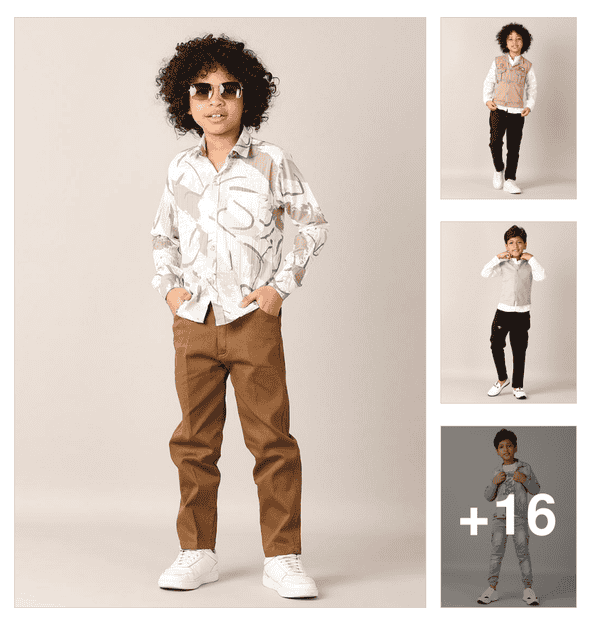 boys printed jeans & shirt with waist coat set