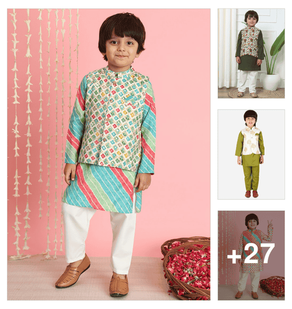 boys printed long sleeve kurta