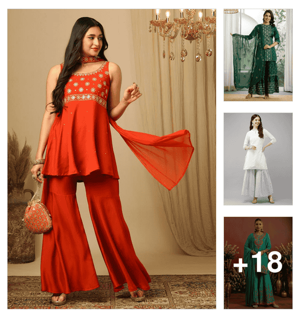 women green sequinned zari embroidered yoke a-line kurta with pant & contrast dupatta set