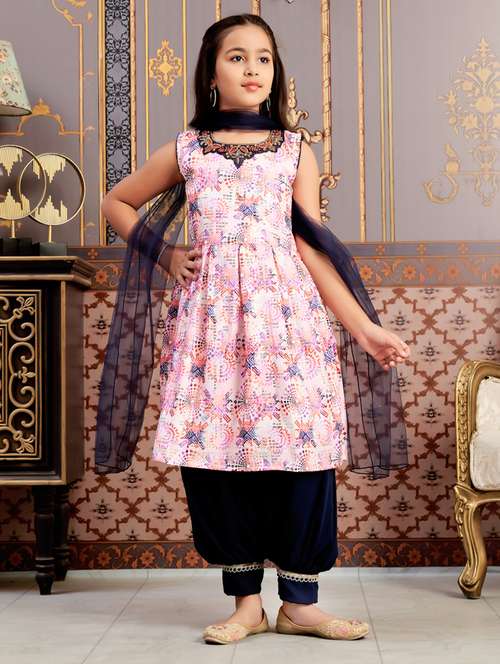 girls printed kurta and salwar with dupatta