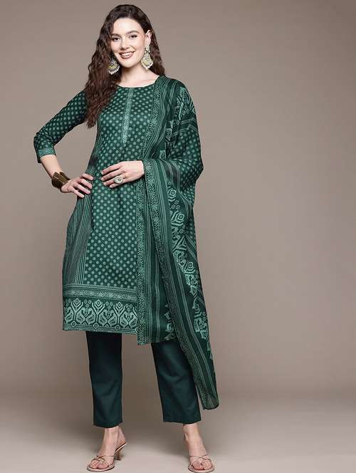 women three quarter sleeve kurta pant with dupatta set