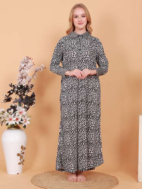 women printed long sleeves nighty