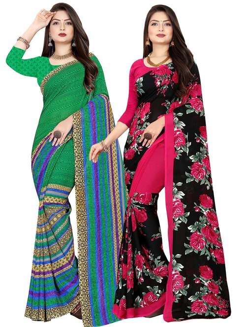 women combo pack of 2 printed saree with blouse