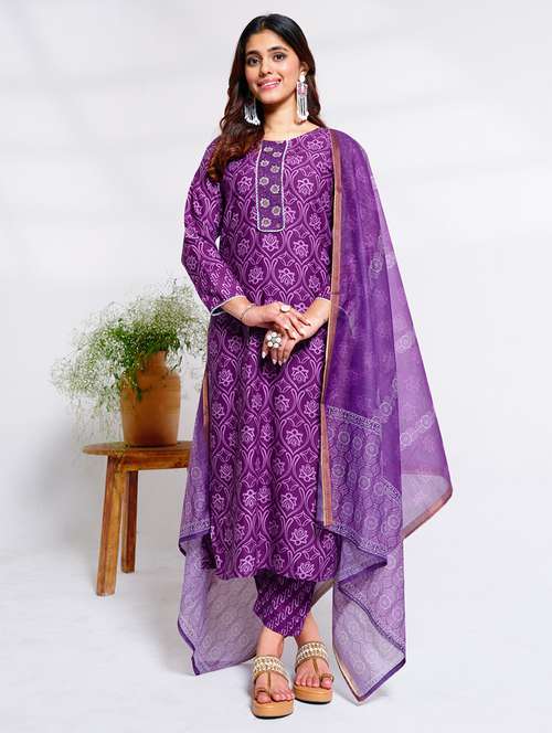 women printed three quarter sleeve kurta pant with dupatta set