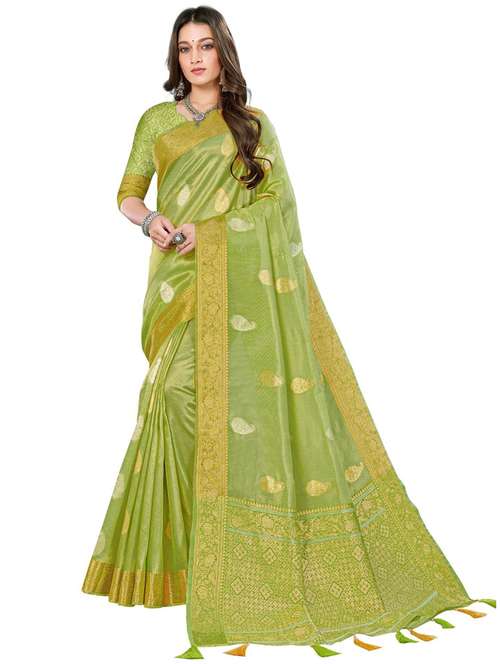 women's self design light green colored saree with blouse