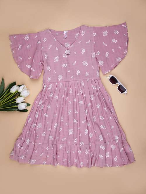 girls floral printed round neck frock