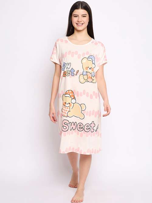 women printed round neck short sleeves sleepshirt