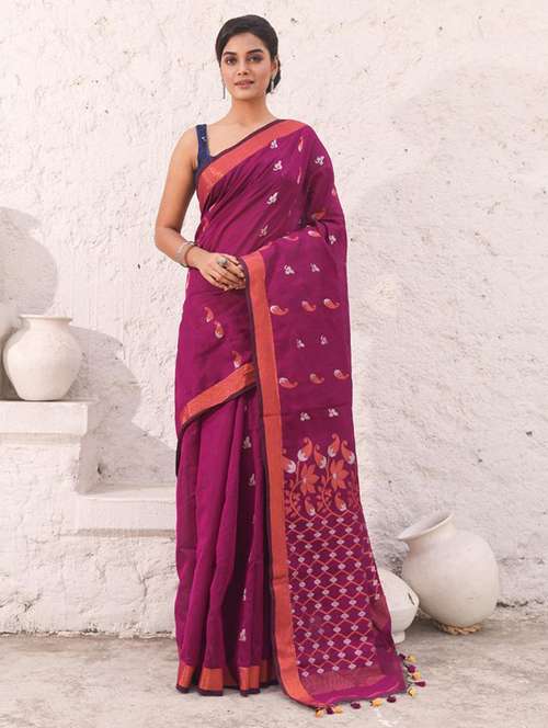women self design handloom saree with blouse