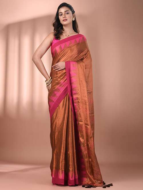 women solid handloom saree with blouse