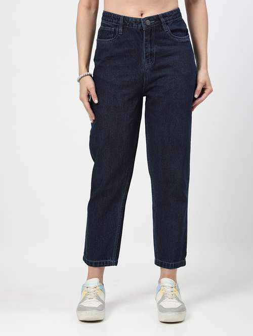 women mid rise straight fit plain jeans