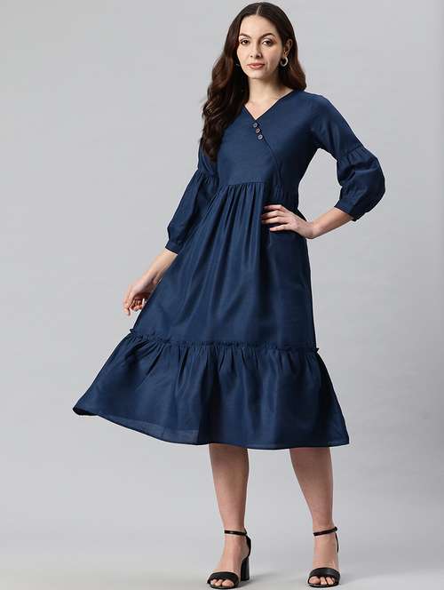 women solid puff sleeves tiered dress