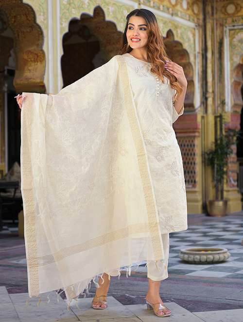 women three quarter sleeve kurta pant with dupatta set