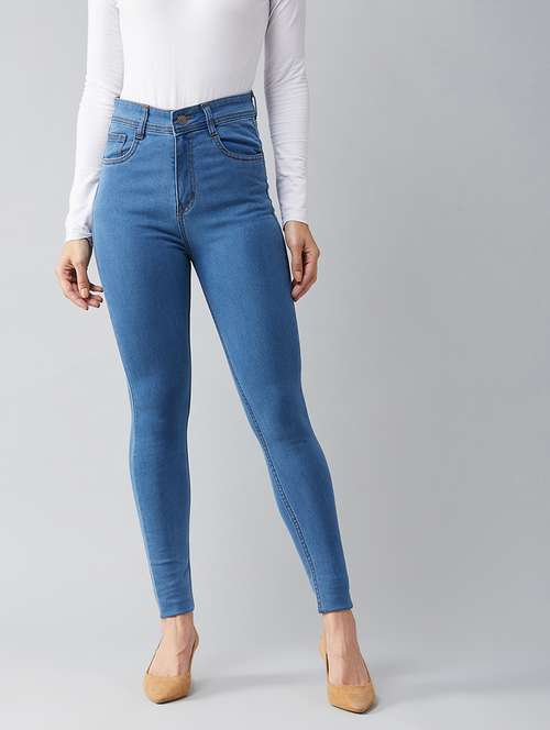 women solid high rise skinny jeans