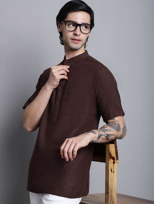 men solid mandarin neck short kurta