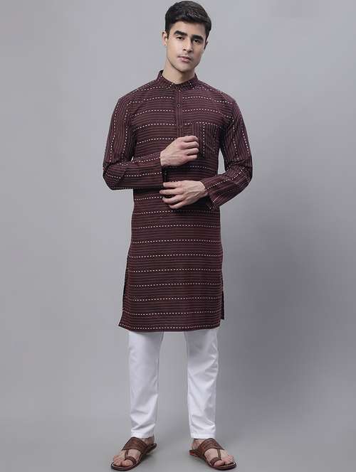 men self design mandarin neck long kurta