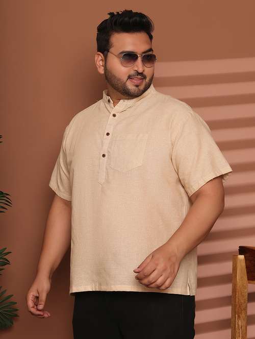 men solid mandarin neck short kurta