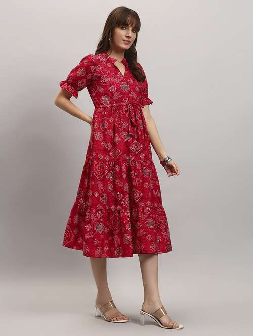 women bandhani puff sleeves tiered dress