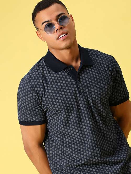 men printed short sleeve slim fit polo t-shirt
