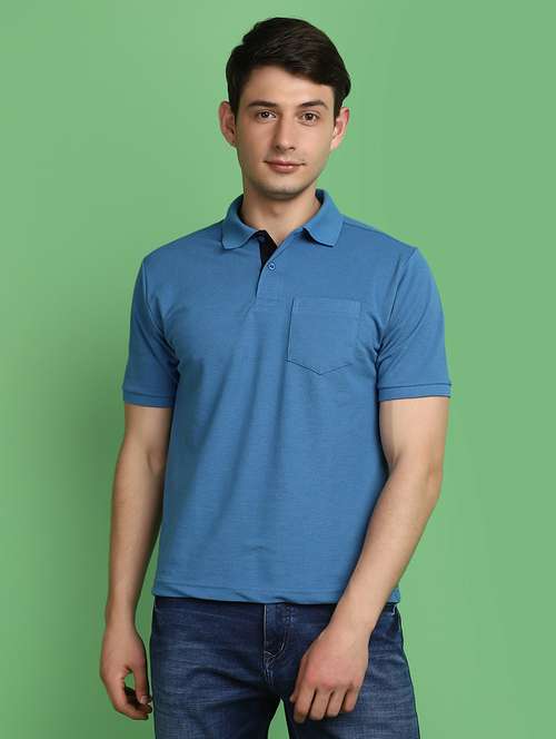 blue cotton blend plain t-shirt