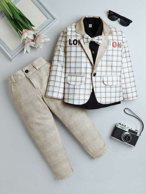 boys checkered three piece suit set