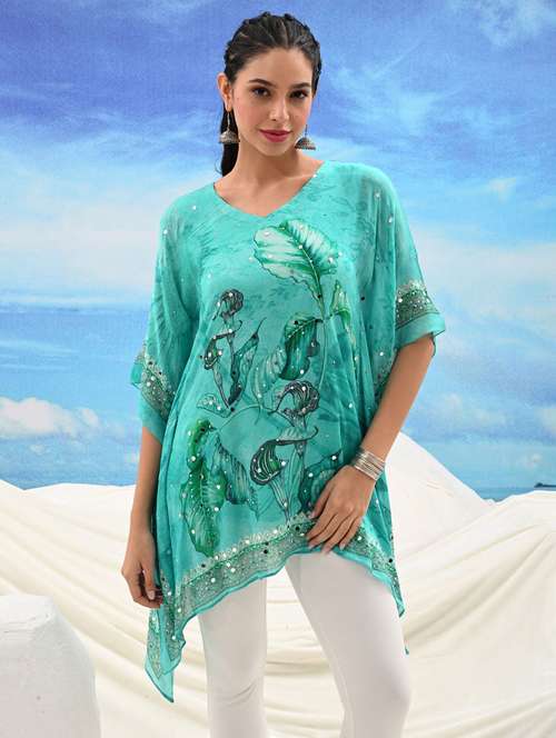 women printed kimono sleeve kaftan tunic