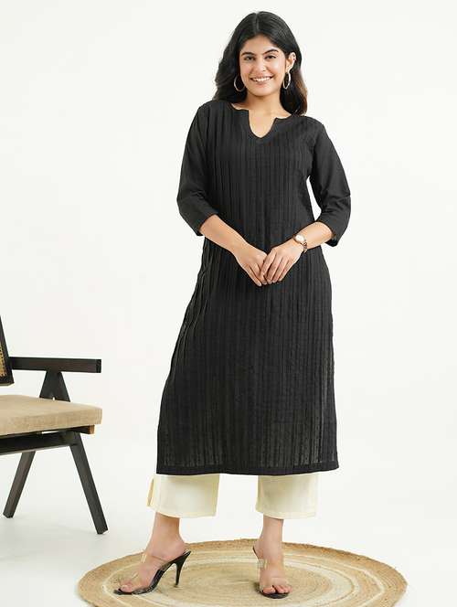 women solid three quarter sleeve straight kurta