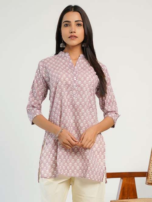 women printed three quarter sleeve straight kurti
