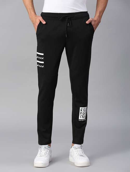 men black cotton blend  full length track pant