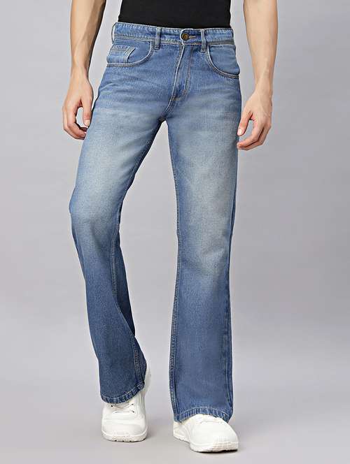 men plaim mid rise bootcut jean