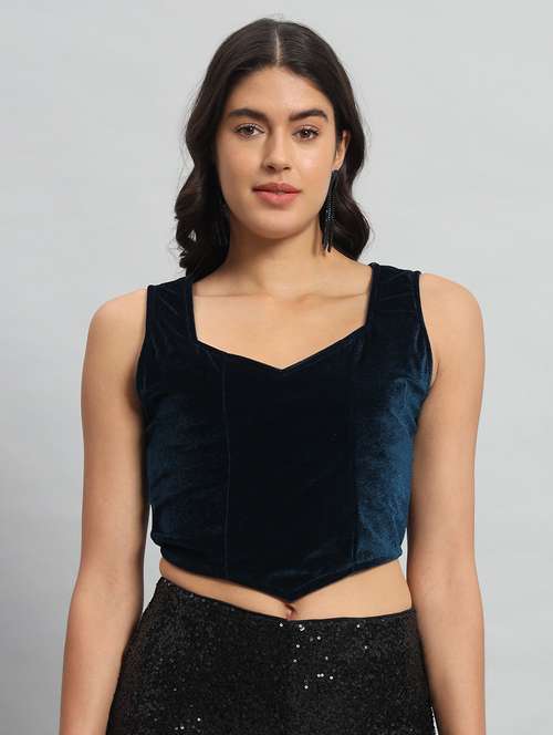 women solid sleeveless stitched velvet blouse