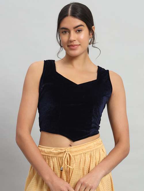 women solid sleeveless stitched velvet blouse