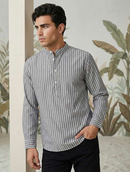 men striped mandarin neck long sleeve short kurta